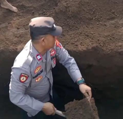 Kebumen. Rasa setia kawan Kanit Binmas Polsek Buluspesantren, Aiptu Mualim, layak diapresiasi. Tanpa sempat melepas baju seragam polisi, ia rela mengayunkan cangkul demi menggali makam untuk anak dari sahabatnya yang meninggal.