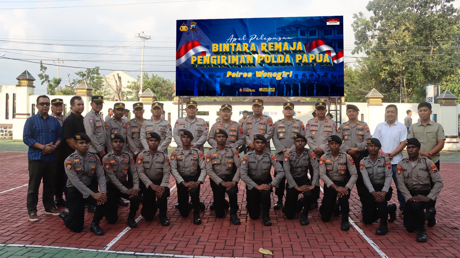 Wonogiri – Jajaran Polres Wonogiri menggelar Apel Pelepasan Bintara Remaja Orang Asli Papua (OAP) yang telah selesai menjalani masa pengenalan tugas selama kurang lebih satu tahun di wilayah hukum Polres Wonogiri. Kegiatan berlangsung di halaman Mapolres Wonogiri, Rabu (21/5/2025).