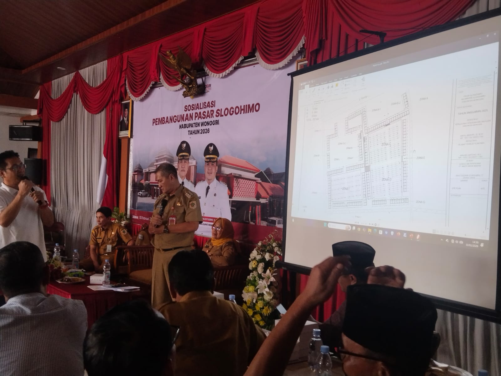 Pertemuan tersebut dihadiri langsung oleh Bupati Wonogiri Setyo Sukarno, anggota DPRD Kabupaten Wonogiri Dapil III, jajaran OPD terkait, Forkopimcam Slogohimo, serta sekitar 400 pedagang Pasar Slogohimo. Audiensi berlangsung sejak pukul 13.00 WIB hingga 15.30 WIB dan berjalan tertib serta kondusif.