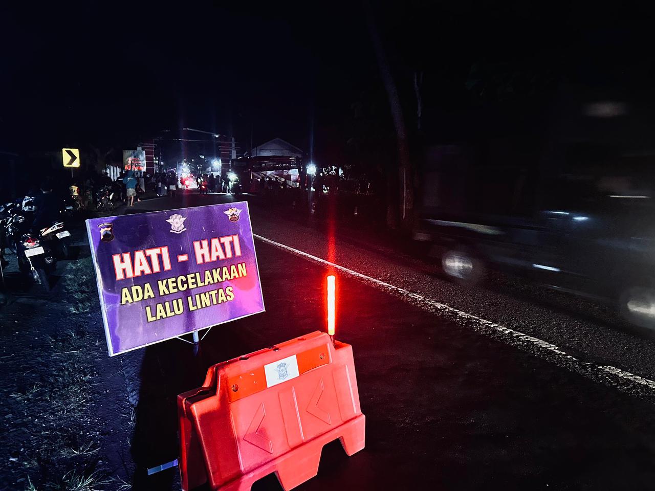 Polres Wonogiri mengimbau kepada seluruh pengemudi untuk selalu menjaga kondisi fisik saat berkendara, terutama pada malam hari, serta tetap berhati-hati saat melintas di persimpangan jalan guna mencegah terjadinya kecelakaan lalu lintas. (Humas Polres Wonogiri Polda Jateng)