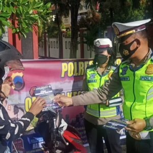 Sosialisasi Tertib Berlalu Lintas, Satlantas Polres Wonogiri Turun ke Jalan Bagikan Sticker dan Masker