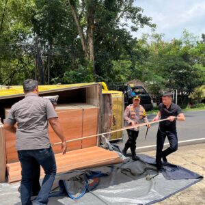 Sigap, Kapolres Wonogiri Bantu Evakuasi Laka Tunggal Truk Di Jatisrono