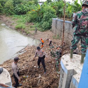 *Bersama Lawan Bencana, Polres Sukoharjo Bersihkan Bendungan Bengawan Solo dari Sampah*