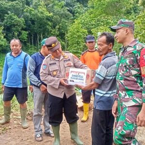 Polri Peduli, Polsek Batuwarno Kerja Bakti Dan Berikan Sembako Korban Longsor