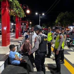 Personel Pos Terpadu Ops Lilin Candi 2025 Polres Wonogiri Intensifkan Patroli Malam di Alun-alun Giri Krida Bhakti