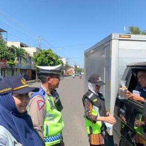 Sosialisasikan Ops Keselamatan, Petugas Bagikan Brosur Tertib Berlalulintas