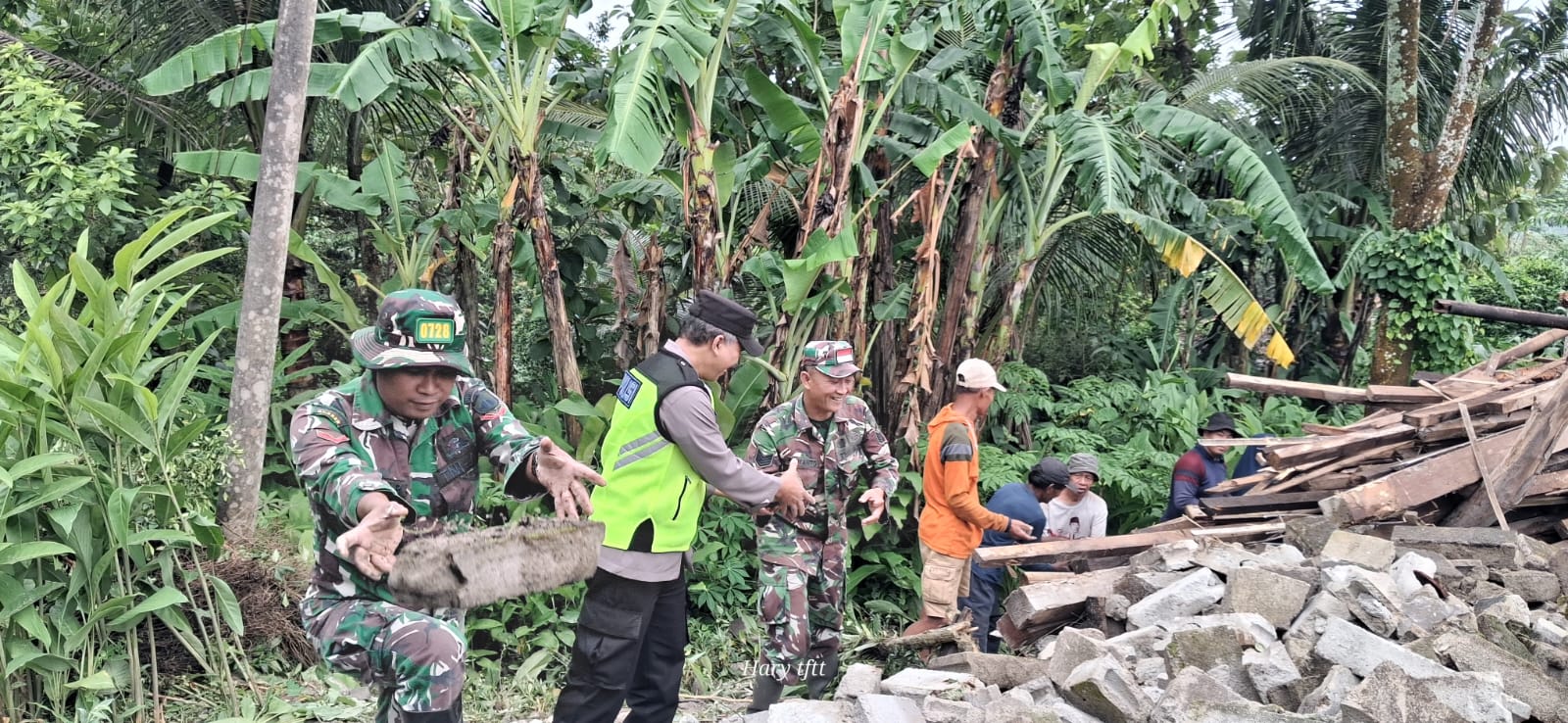 Petugas Polsek Kismantoro yang menerima laporan pada Sabtu (7/2/2026) pagi langsung mendatangi lokasi kejadian untuk melakukan pengecekan tempat kejadian perkara (TKP). Selain itu, polisi juga bersama warga melaksanakan kerja bakti membersihkan material bangunan yang roboh serta mengamankan lokasi.