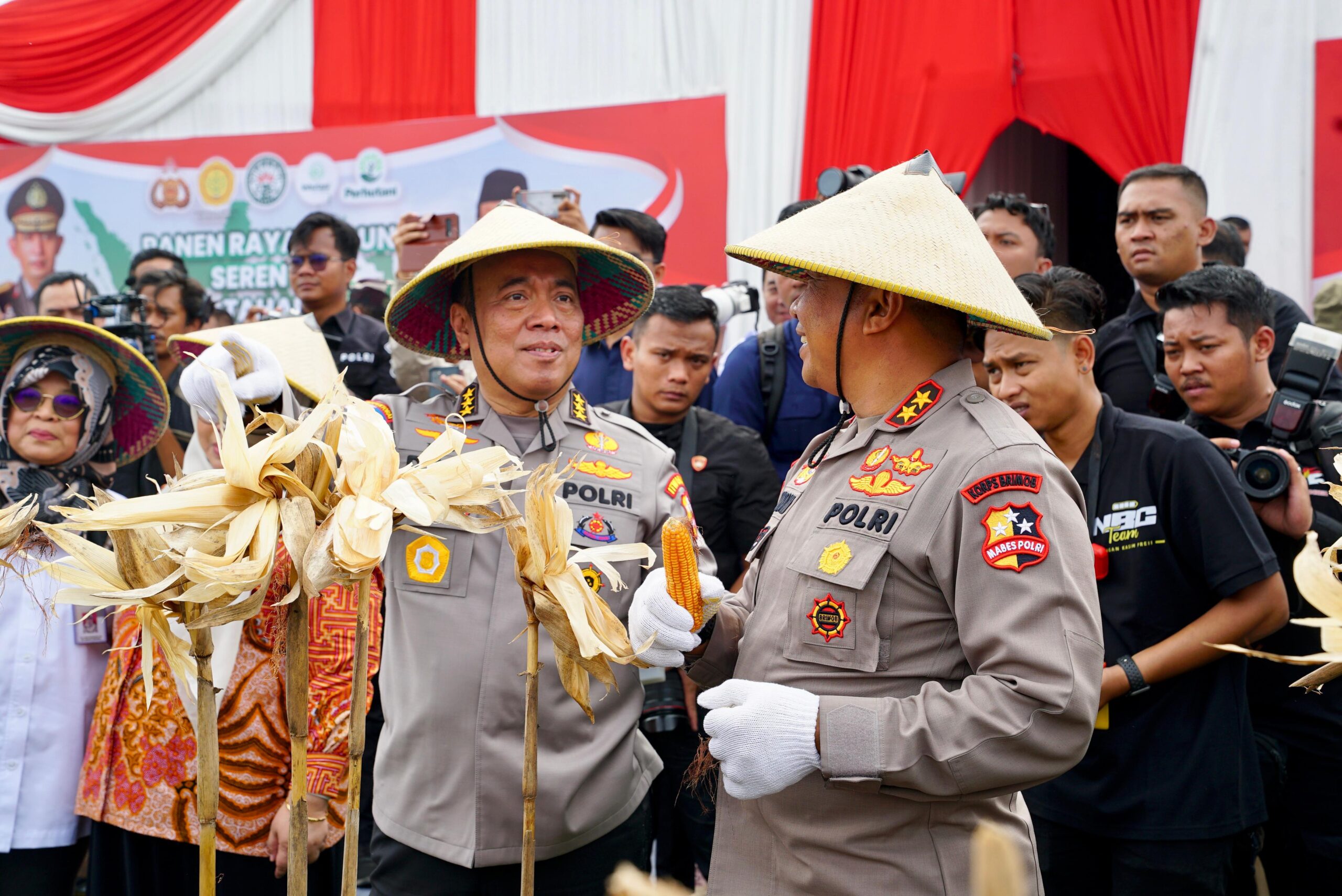 Madiun. Irwasum Polri Komjen Pol. Dedi Prasetyo dan Wakil Menteri Pertanian (Wamentan) Sudaryono mempimpin panen raya jagung secara serentak pada Tahap 1 di Desa Bulu, Pilangkenceng, Kabupaten Madiun Jawa Timur, Rabu (26/2/2025).