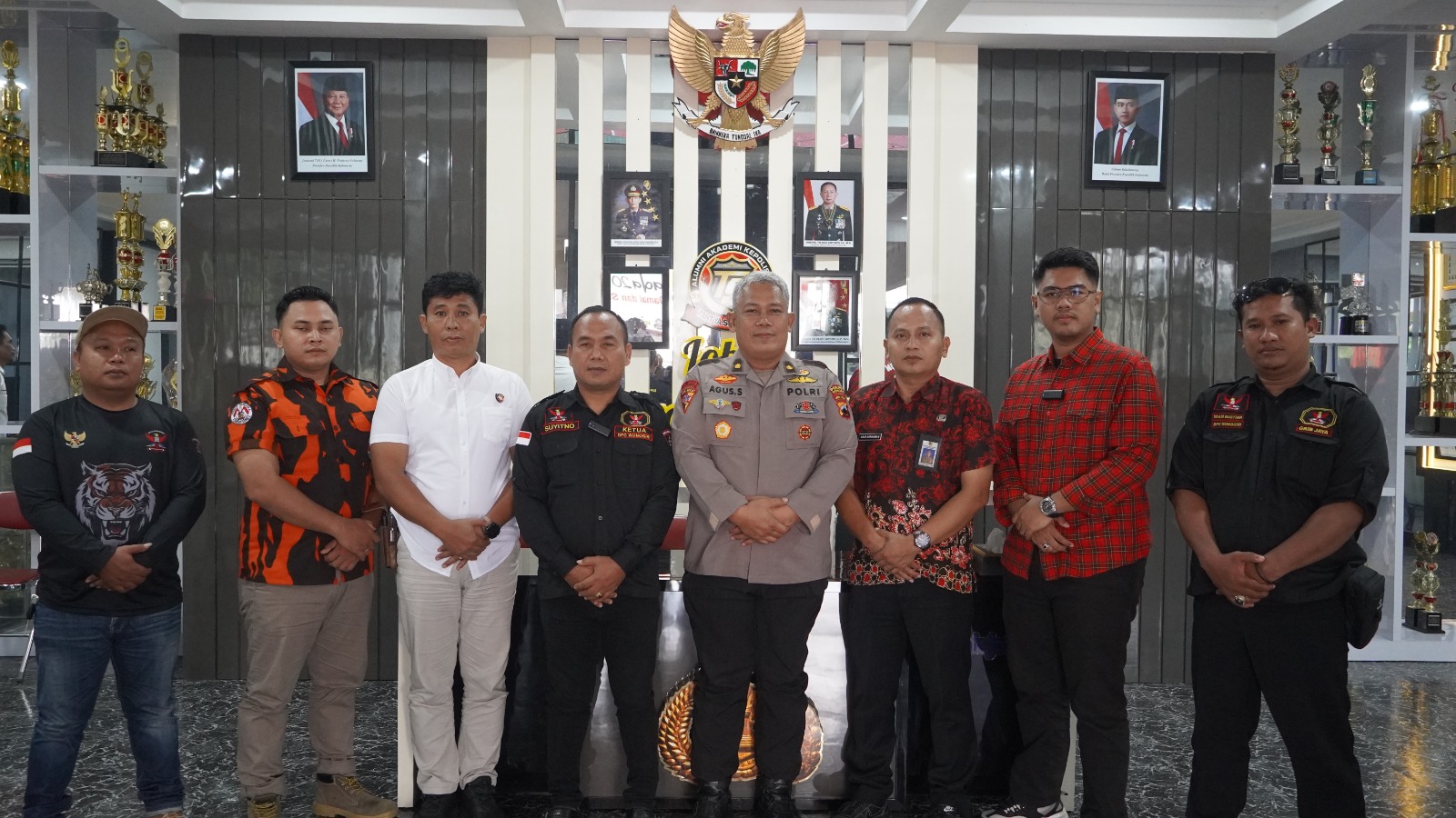 Diterima Kabag Ops Polres Wonogiri Kompol Agus Syamsudin, S.H., dan para PJU Polres Wonogiri, perwakilan ormas hadir dalam kegiatan ini adalah Ketua DPC Gerakan Rakyat Indonesia Bersatu (GRIB) Jaya Kabupaten Wonogiri, dan Ketua MPC Pemuda Pancasila Kabupaten Wonogiri.