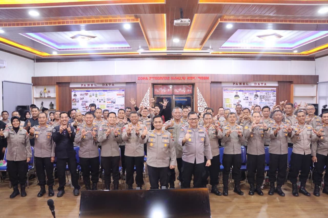 Kegiatan yang berlangsung di Aula Sanika Satyawada Polres Wonogiri tersebut dihadiri oleh Kapolres Wonogiri AKBP Wahyu Sulistyo, S.H., S.I.K., M.P.M., Wakapolres Kompol Parwanto, S.H., M.H., para Pejabat Utama, serta para Kapolsek jajaran.