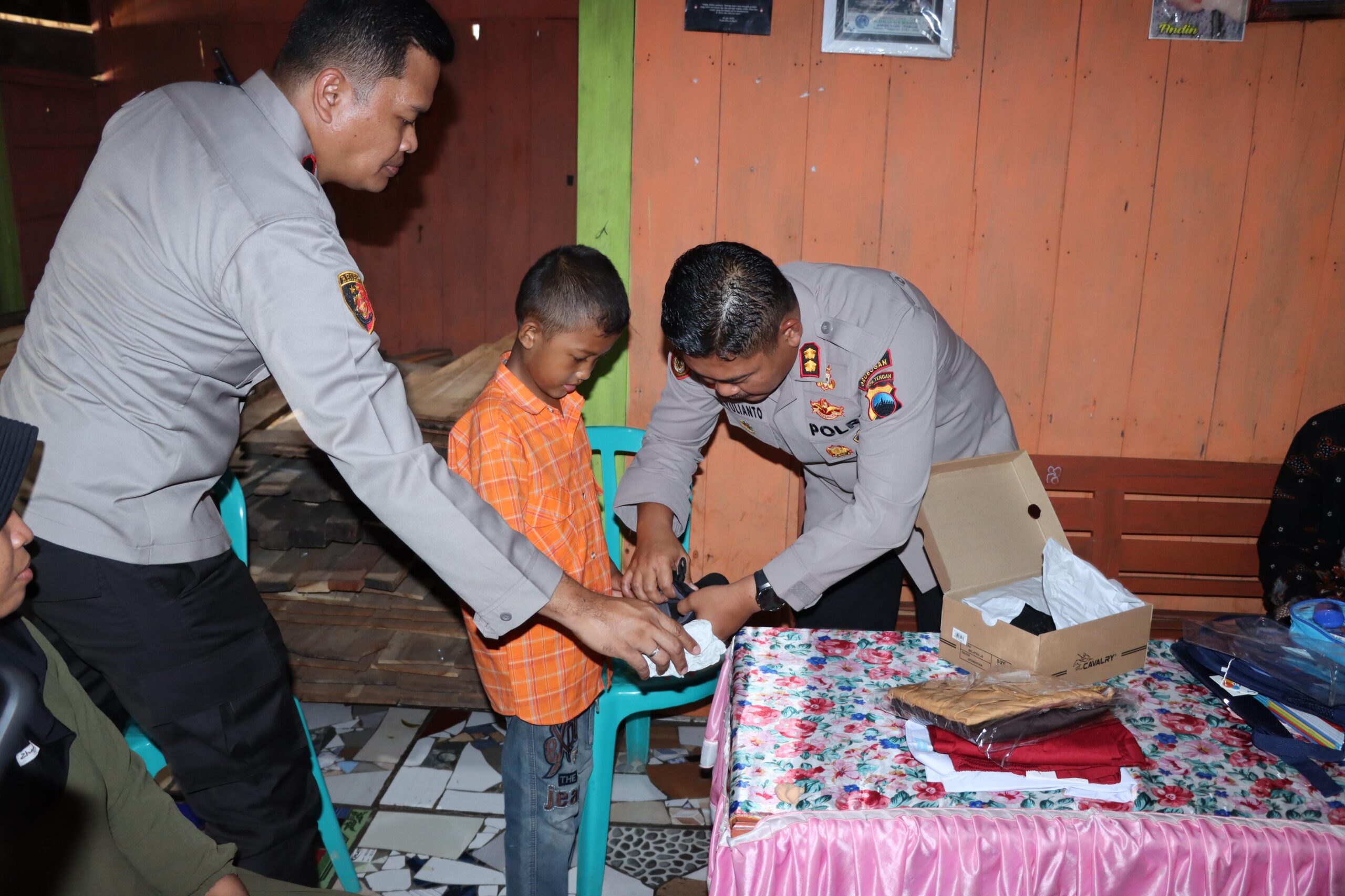 Selain itu, AKBP Ike Yulianto juga memberikan bantuan perlengkapan sekolah untuk Slamet, seperti buku, tas, sepatu, peralatan tulis hingga dukungan dana untuk meringankan beban keluarga tersebut.