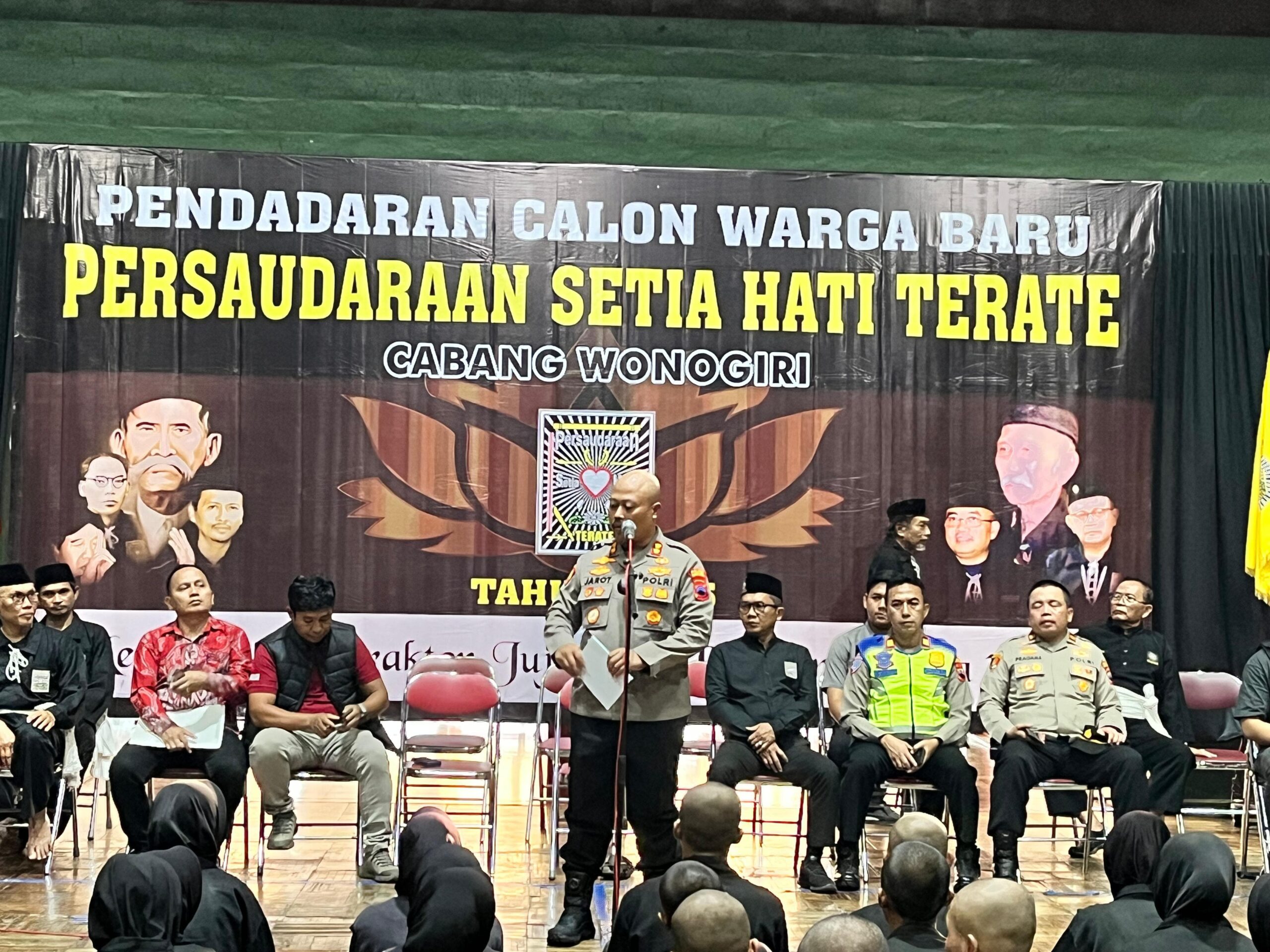 Polres Wonogiri – Kapolres Wonogiri AKBP Jarot Sungkowo, S.H., S.I.K., M.H. menghadiri kegiatan apel pengamanan dan memberikan arahan langsung kepada peserta pendadaran calon warga PSHT Parluh 16 Cabang Wonogiri Tahun 2025, Sabtu (21/6/2025) di dalam GOR Giri Mandala Wonogiri.