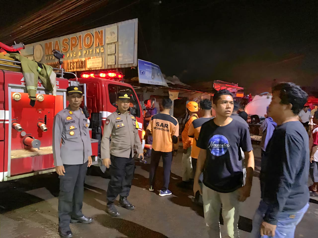 Wonogiri – Kebakaran hebat melanda deretan toko di kawasan Eks Stasiun Baturetno, tepatnya di barat Pasar Bung Karno, Kecamatan Baturetno, Kabupaten Wonogiri, pada Selasa (17/3/2026) malam sekitar pukul 20.00 WIB. Peristiwa ini menghanguskan sedikitnya tujuh unit usaha milik warga.