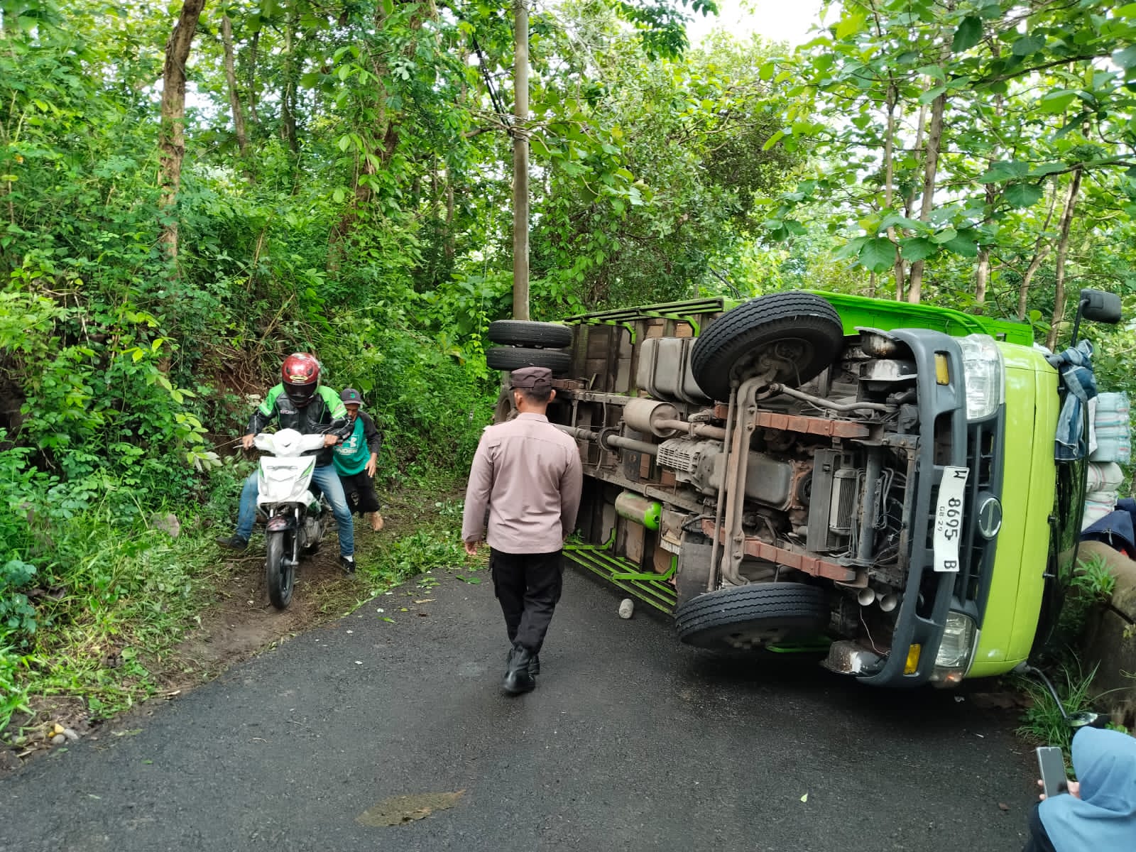 Wonogiri – Sebuah truk bermuatan plastik perabot rumah tangga dengan nomor polisi W-8695-B mengalami kecelakaan tunggal di jalur tanjakan Jl. Raya Jatiroto–Tirtomoyo, tepatnya di Dusun Dawe Kidul, Desa Ngelo, Kecamatan Jatiroto, pada Selasa (11/11/2025) sekitar pukul 05.30 WIB.