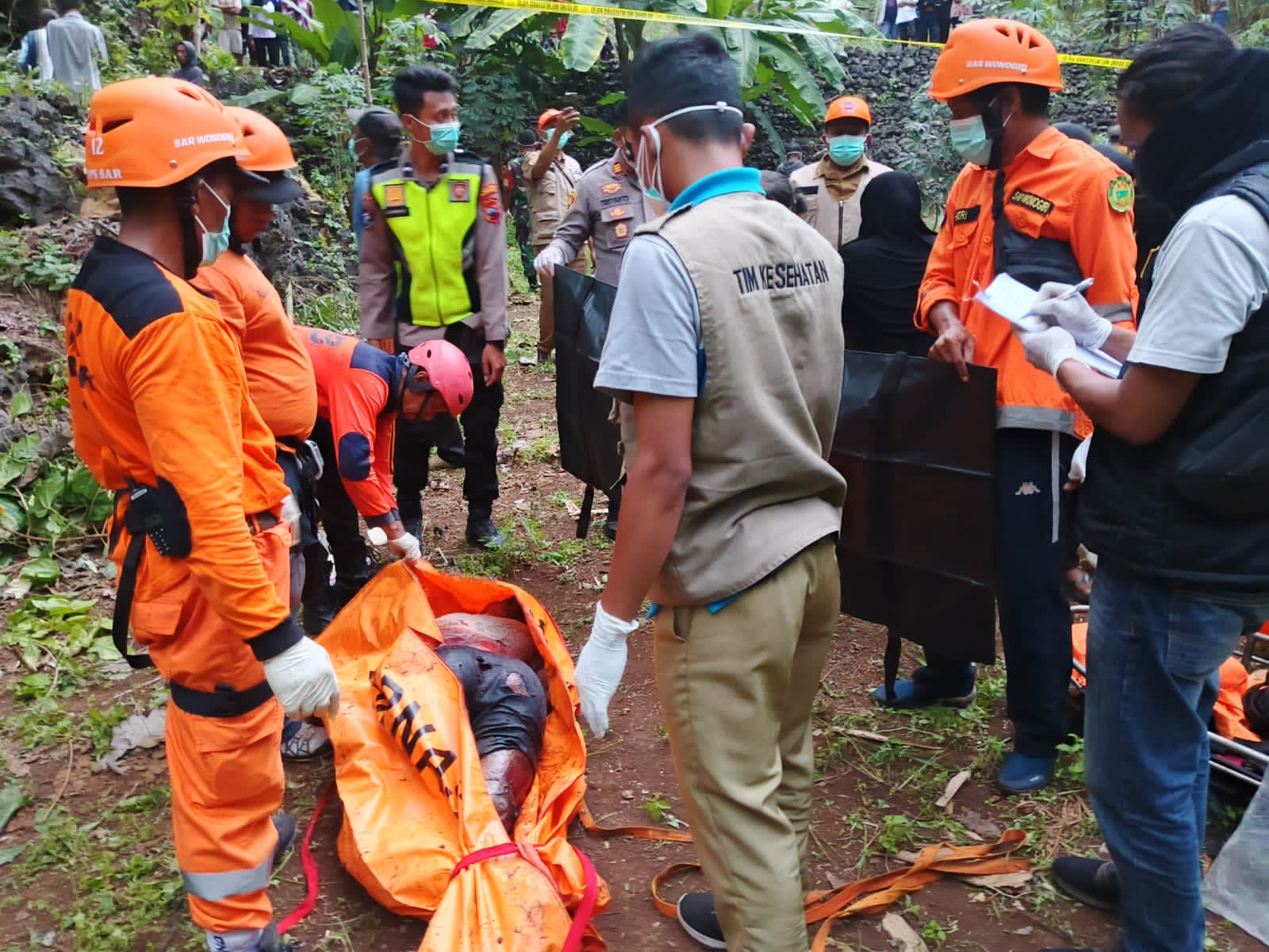 Wonogiri — Polres Wonogiri bersama tim gabungan dari BPBD, dan Tim SAR Kabupaten Wonogiri berhasil mengevakuasi seorang warga yang ditemukan meninggal dunia di dalam Luweng atau Goa Vertikal Rejoso, Dusun Bogor, Desa Gudangharjo, Kecamatan Paranggupito, Kabupaten Wonogiri. Senin (7/7/2025).