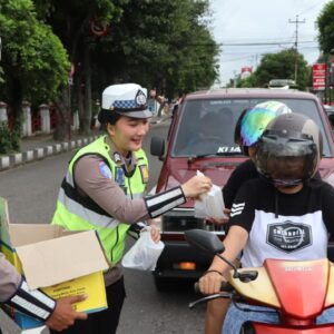 Sat Lantas Polres Wonogiri Bagi 250 Takjil di Simpang Ponten, Sambil Edukasi Tertib Lalu Lintas