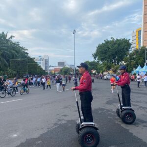 *Momen Unik CFD Simpang Lima, Pengunjung Antusias Coba Segway Patroli Polisi*