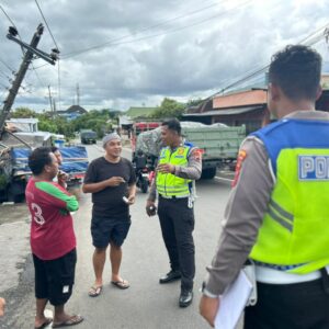 *Di Tengah Hujan dan Kemacetan, Polisi Sigap Bantu Sopir Truk Mogok di Tanjakan Bukit Sari*