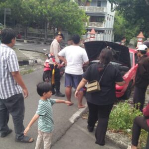 Mobil Sedan Terbakar di Depan Kantor Kejaksaan Wonogiri, Polisi Sigap Bantu Padamkan Api