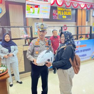 Peringati Hari Lalu Lintas, Satlantas Polres Wonogiri Bagi-bagi Helm di Samsat