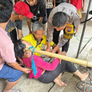 Polisi Bantu Evakuasi Ibu Rumah Tangga yang Tercebur Sumur di Nguntoronadi