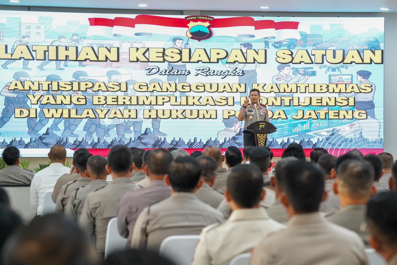Polda Jateng&Kota Semarang | Menjelang peringatan Hari Buruh Internasional (May Day), Polda Jawa Tengah memperkuat kesiapan personel melalui Latihan Kesiapan Satuan yang digelar di Gedung Borobudur, Senin (13/4/2026). Bukan sekadar latihan rutin, kegiatan ini menjadi upaya serius untuk memastikan bahwa setiap anggota Polri hadir di tengah masyarakat, khususnya para buruh yang akan menyampaikan aspirasinya, dengan pendekatan yang humanis, profesional, dan terukur.
