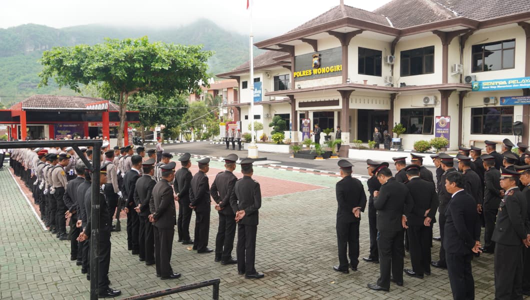 Sementara itu, pada waktu yang sama, Polres Wonogiri juga menggekar upacara internal di halaman Mapolres Wonogiri, dengan Wakapolres Kompol Parwanto, S.H., M.H. sebagai Inspektur Upacara.