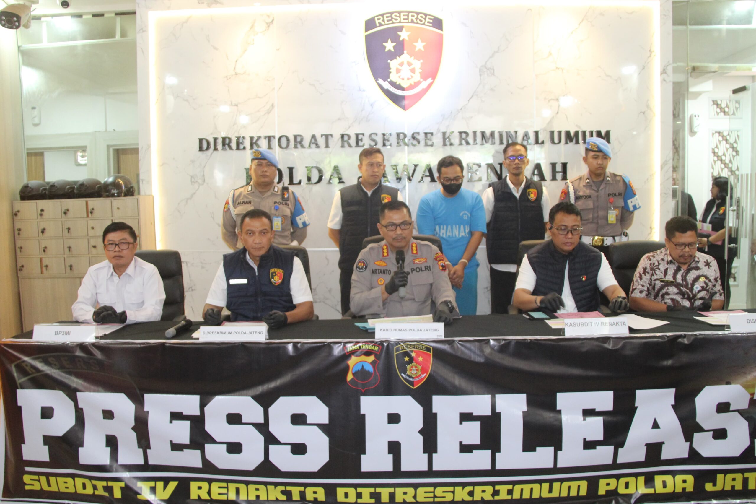 Direktur Reserse Kriminal Umum (Dirreskrimum) Polda Jawa Tengah Kombes Pol Dwi Subagio mengatakan pihaknya menggagalkan pengiriman calon pekerja migran Indonesia di Kabupaten Brebes setelah menerima laporan dari korban. Hal itu disampaikannya dalam gelar perkara di lobi Ditreskrimum Polda Jateng, Rabu (19/2/2025).