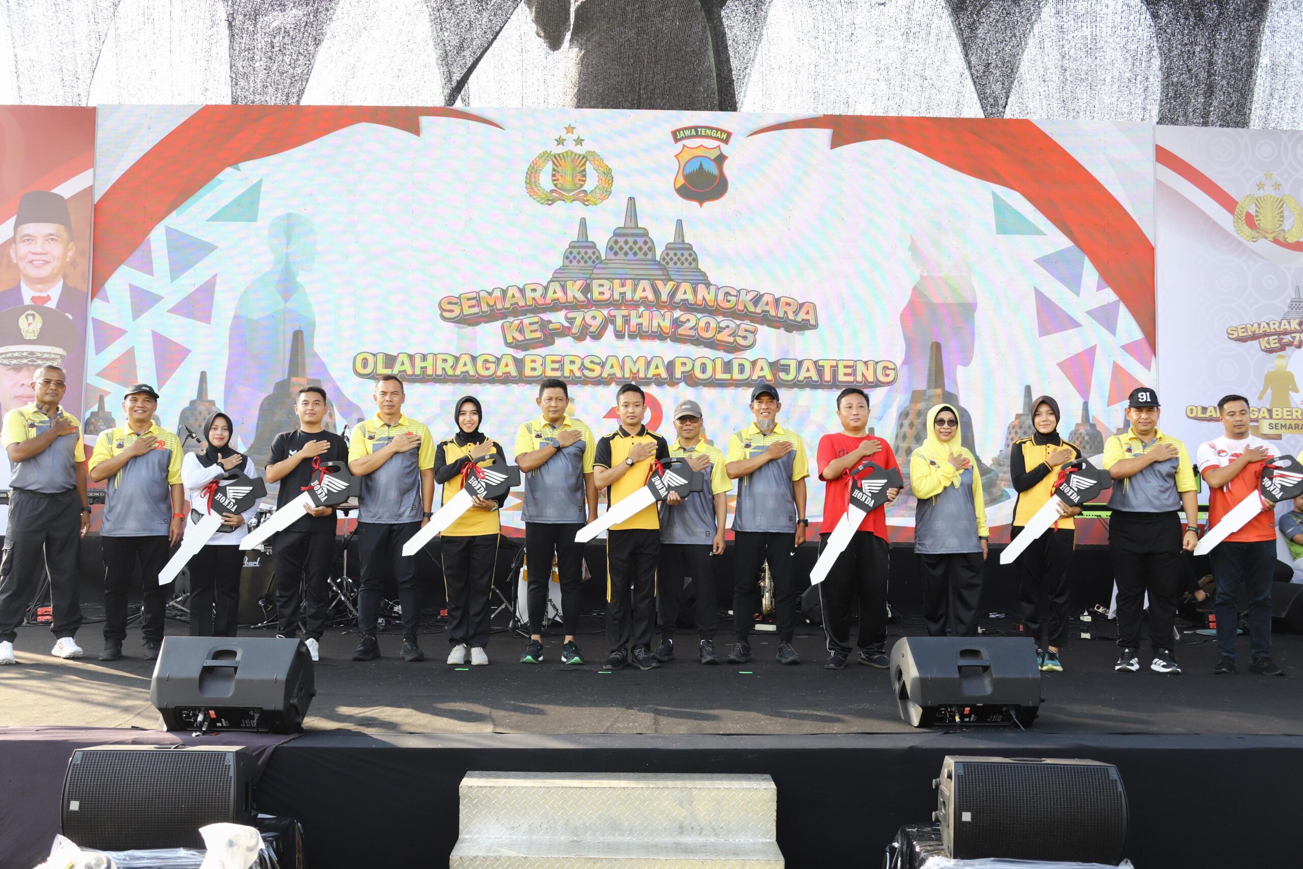 Polda Jateng-Kota Semarang | Dalam rangka menyemarakkan peringatan Hari Bhayangkara ke-79, Polda Jawa Tengah menggelar kegiatan olahraga bersama yang berlangsung meriah pada Selasa, (24/06/2025) pagi. Acara yang berlangsung di Mapolda Jateng ini dihadiri langsung oleh Kapolda Jateng Irjen Pol Ribut Hari Wibowo, para Pejabat Utama (PJU) Polda Jateng, serta tamu undangan dari sejumlah instansi tingkat provinsi Jawa Tengah.