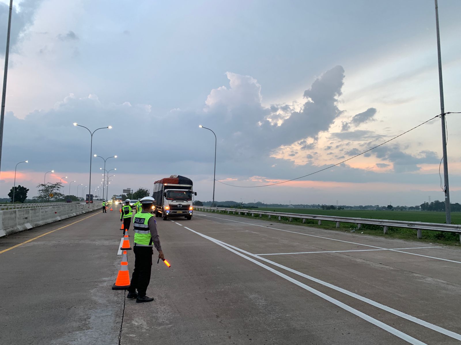 Dalam pelaksanaannya, petugas melakukan penyekatan dengan cara mengeluarkan kendaraan sumbu tiga yang masih melintas di jalan tol menuju jalur arteri. Selanjutnya, para pengemudi diberikan sosialisasi dan pemahaman terkait kebijakan pembatasan operasional angkutan barang, serta diarahkan menuju kantong parkir terdekat untuk menunggu hingga masa pembatasan operasional berakhir.