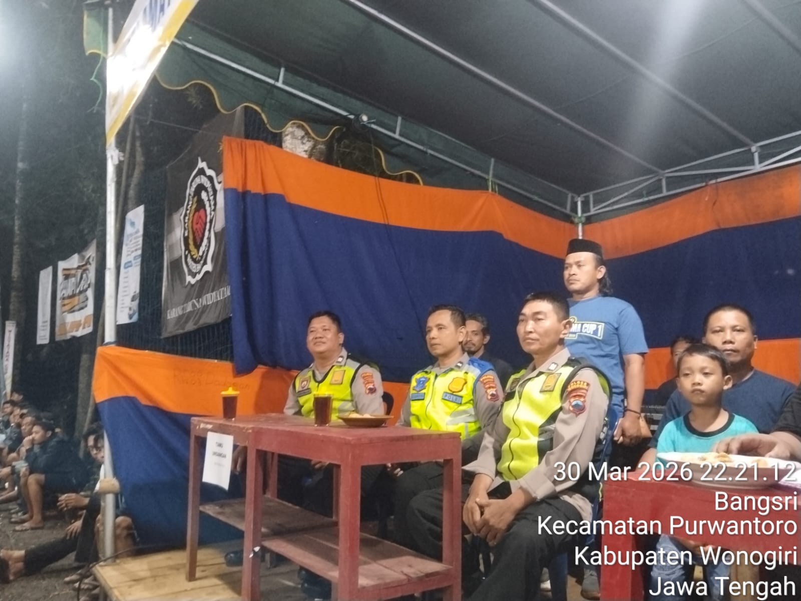 Wonogiri – Kepolisian Sektor (Polsek) Purwantoro melaksanakan pengamanan kegiatan Turnamen Bola Voli Putra Widyatama Cup I se-Distrik Purwantoro yang digelar di Lapangan Desa Bangsri, Kecamatan Purwantoro, Senin (30/3/2026) malam.