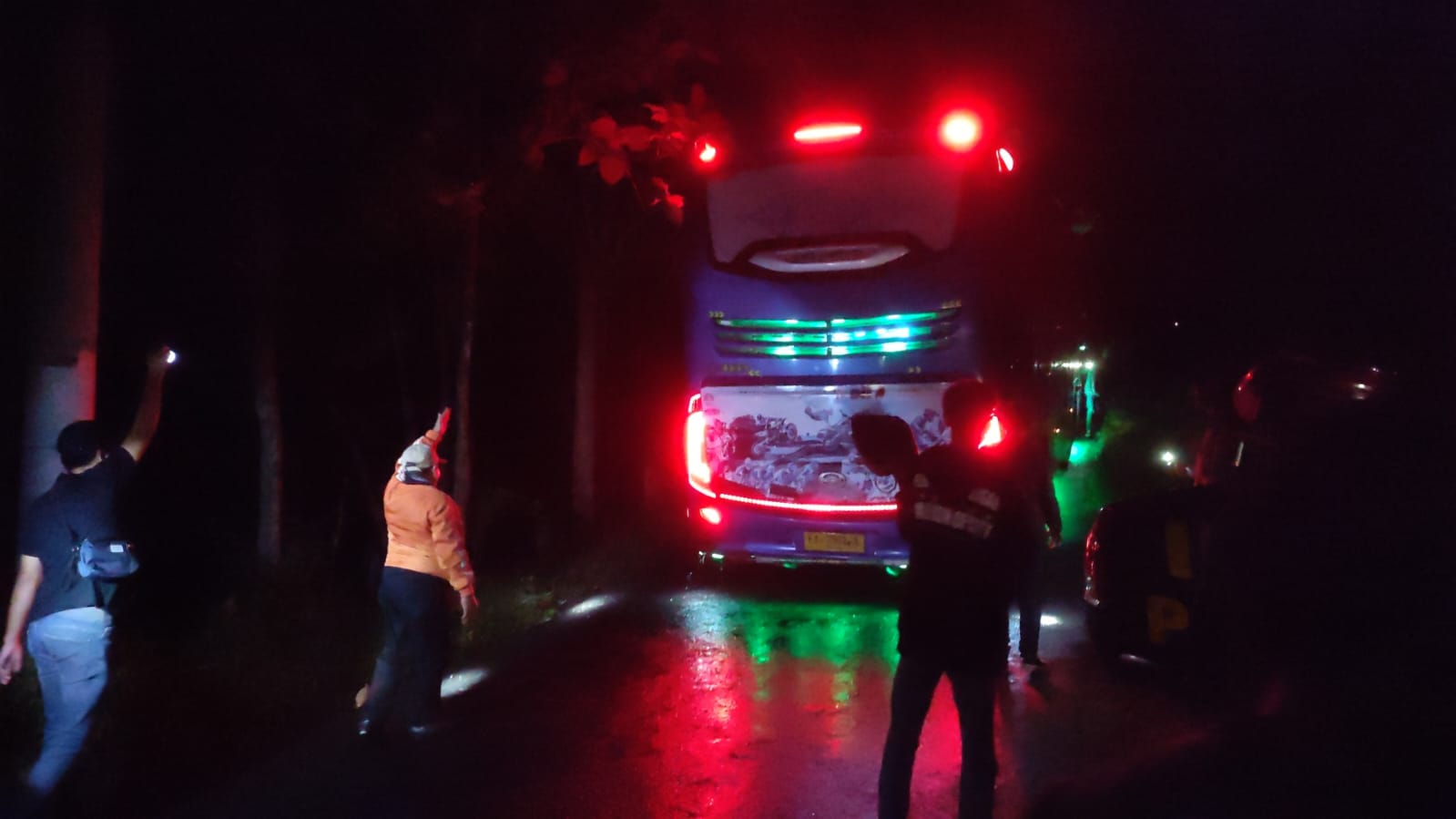 Insiden bus pariwisata tersesat di hutan Tunggangan ini menjadi pengingat bagi pengendara untuk lebih berhati-hati dalam memilih jalur di daerah pedesaan yang memiliki medan jalan sempit dan berliku. (Humas Polres Wonogiri Polda Jateng)