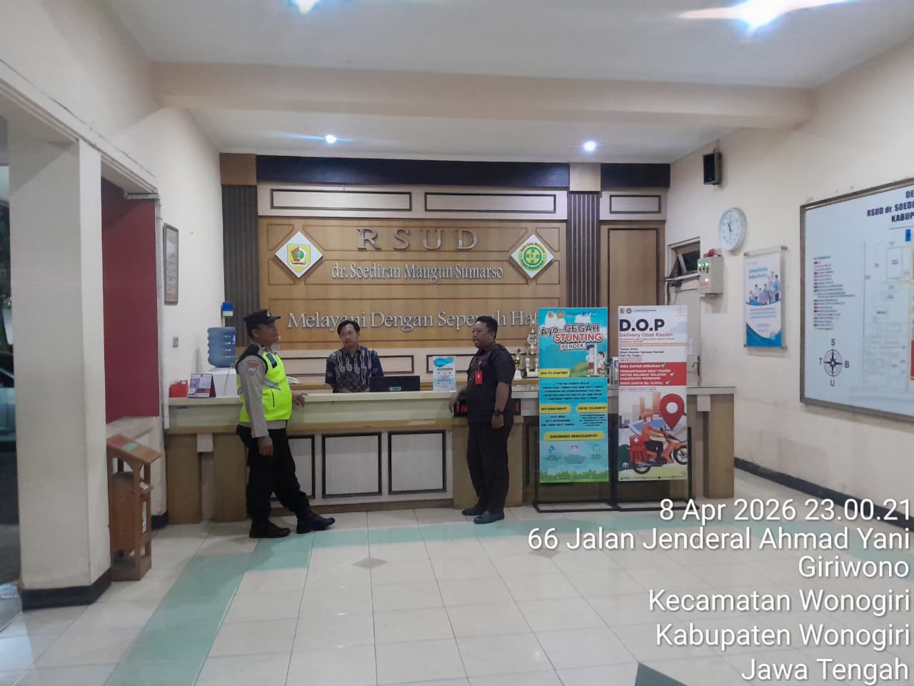 Kegiatan patroli tersebut dilaksanakan oleh Aipda Eko Yuliyanto, SH dan Brigadir Hajir Sulthoni, SH mulai pukul 22.00 WIB hingga selesai di wilayah hukum Polsek Wonogiri Kota.