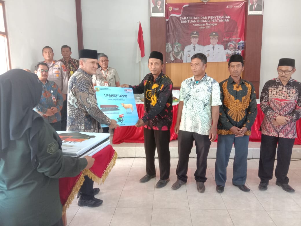 Penyerahan bantuan pertanian secara simbolis dilakukan oleh Bupati Wonogiri kepada perwakilan kelompok tani dari 12 kecamatan, meliputi alat dan mesin pertanian (alsintan) seperti hand tractor, cultivator, pompa air, serta pembangunan jalan usaha tani.