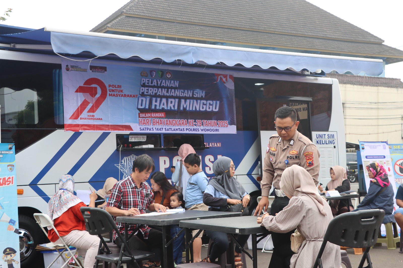 Pelayanan dilakukan oleh personel Satlantas dan Polres Wonogiri yang bersinergi dengan petugas UPPD dan kasir dari Bank BPD Jateng. Masyarakat dapat memperpanjang STNK tahunan, SIM, membuat SKCK, serta mendapatkan edukasi terkait Aplikasi SIGNAL (Samsat Digital Nasional).