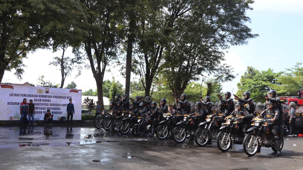 Wonogiri – Polres Wonogiri menggelar kegiatan Pelatihan Sistem Pengamanan Kota (Sispamkota) dalam rangka meningkatkan kesiapan satuan menghadapi potensi gangguan keamanan dan ketertiban masyarakat (kamtibmas) yang berimplikasi kontijensi, Kamis (23/4/2026).
