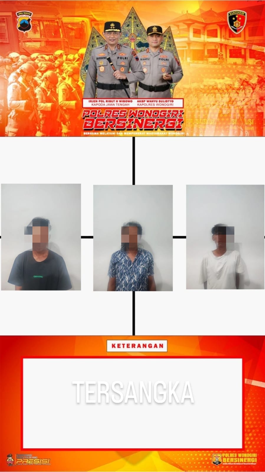 “Ketiganya kini telah diamankan di Mapolres Wonogiri untuk menjalani proses hukum lebih lanjut. Kasus ini kami tangani secara profesional dan tuntas sesuai prosedur penyidikan,” tambahnya.