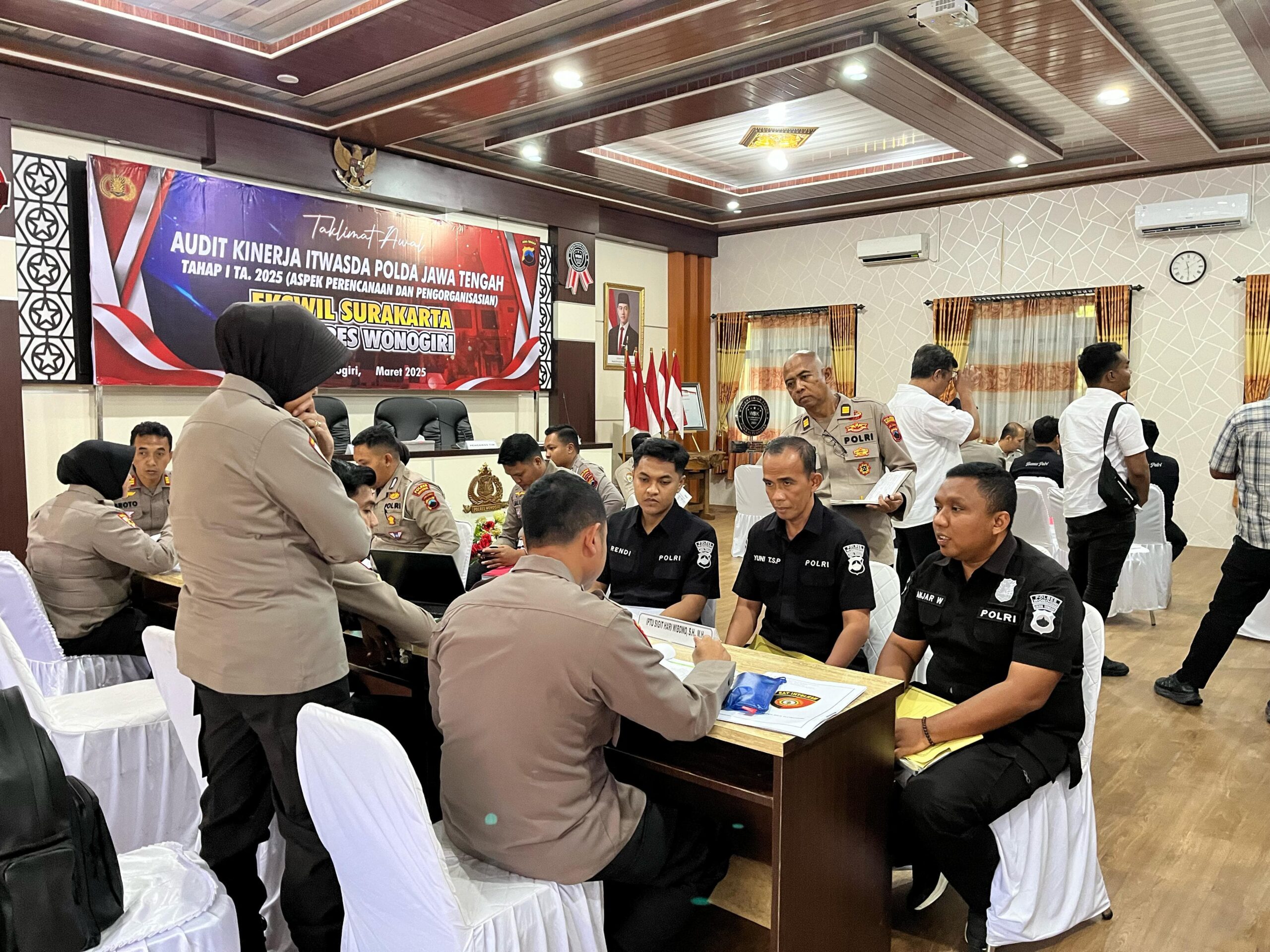 Wonogiri – Polres Wonogiri terima kunjungan dari Itwasda Polda Jateng dalam rangka Taklimat awal Audit Kinerja Tahap I Aspek Perencanaan Dan Pengorganisasian T.A. 2025 di Ruang Aula Sanika Satyawada Polres Wonogiri. Senin (3/3/2025)