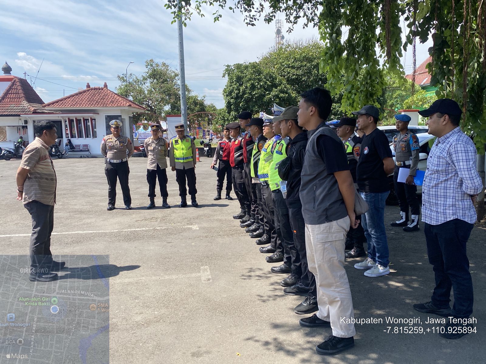 Pengamanan diawali dengan apel pengamanan yang dipimpin oleh Kasat Resnarkoba Polres Wonogiri, AKP Slamet Mulyanto, S.H., M.H., bertempat di Pendopo Rumah Dinas Bupati Wonogiri.