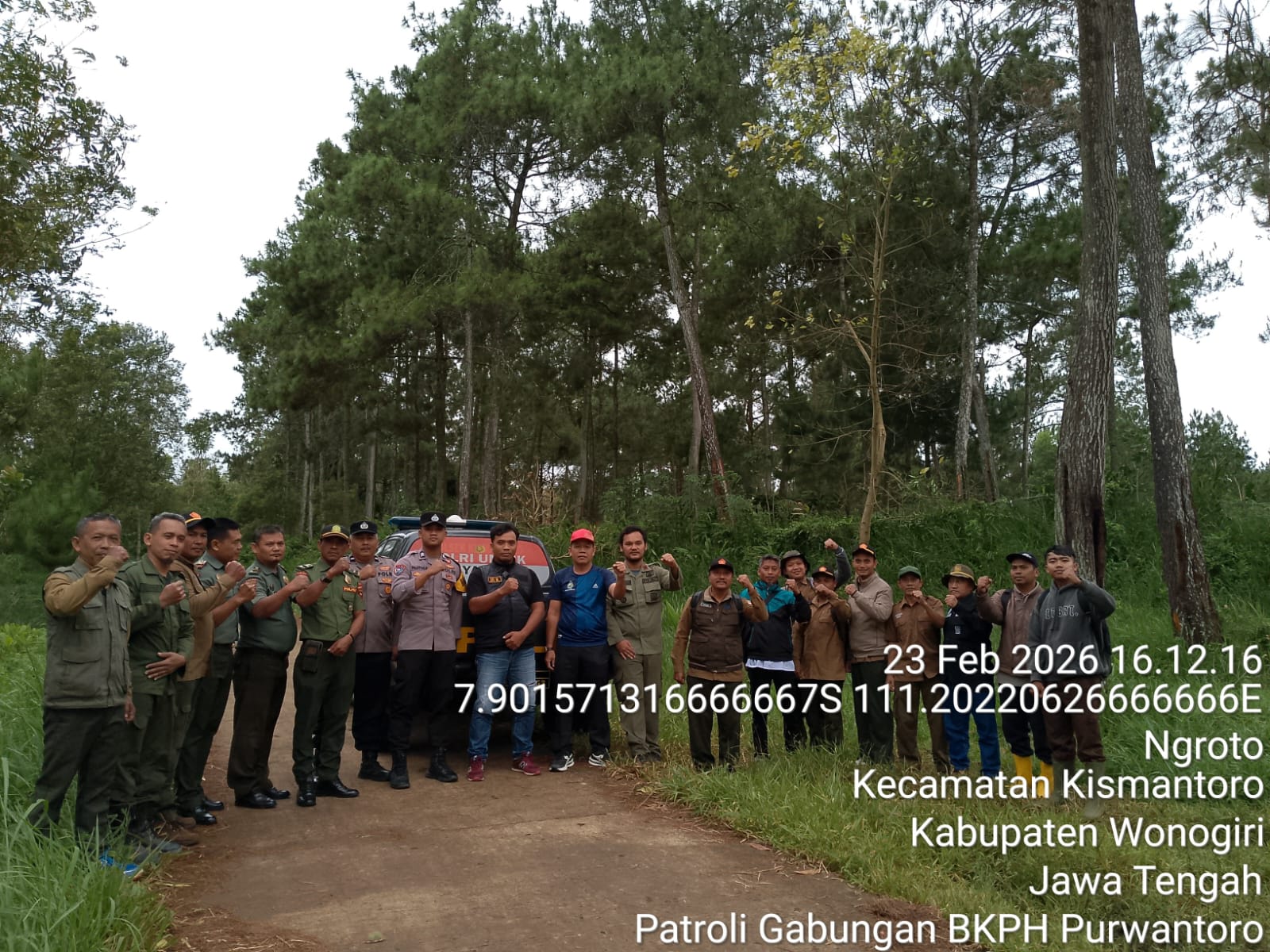 Patroli gabungan tersebut berlangsung sejak pukul 15.30 WIB hingga 20.00 WIB, dengan menyusuri sejumlah titik rawan di kawasan hutan, meliputi Resort Pemangku Hutan (RPH) Kitren wilayah Slogohimo hingga RPH Desa Bugelan, Ngroto, dan Plosorejo di wilayah Kismantoro.