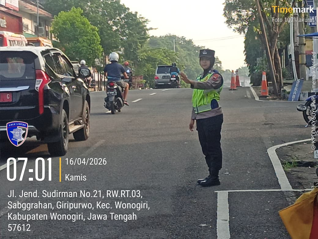 WONOGIRI – Satuan Lalu Lintas (Satlantas) Polres Wonogiri menggelar kegiatan pengamanan dan pengaturan arus lalu lintas (AG Pagi) di sejumlah ruas jalan utama, Kamis (16/4/2026). Kegiatan yang berlangsung mulai pukul 06.30 WIB hingga 07.30 WIB ini bertujuan menciptakan keamanan, keselamatan, ketertiban, dan kelancaran lalu lintas (kamseltibcar lantas).