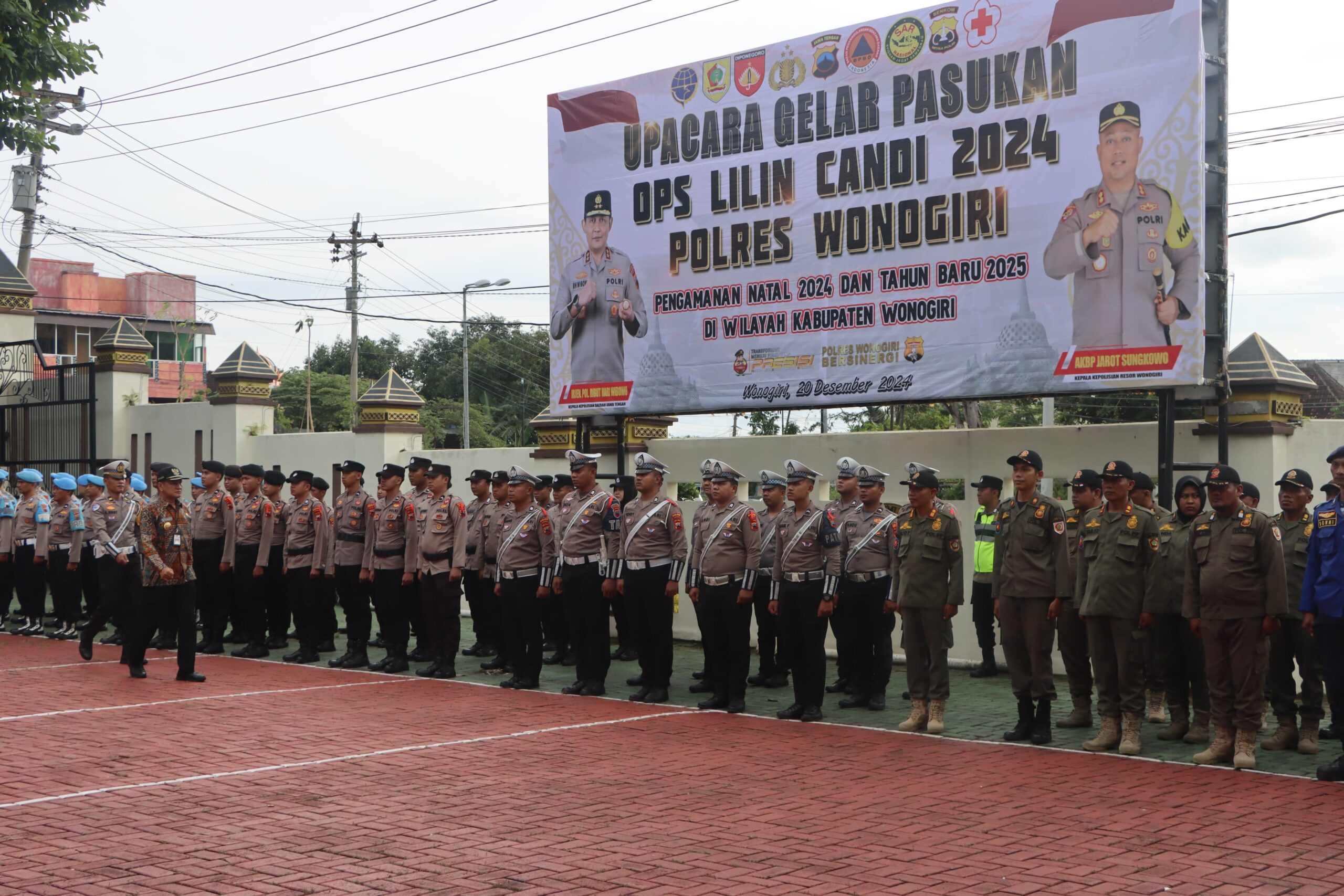 Gelar pasukan ini dipimpin oleh Wakil Bupati Wonogiri ini merupakan bentuk pengecekan akhir kesiapan personel maupun sarana prasarana serta wujud nyata kesiapan Polres Wonogiri dalam pengamanan perayaan Natal 2024 dan Tahun Baru 2025 (Nataru).