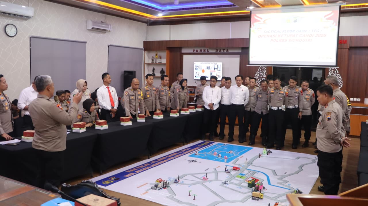 WONOGIRI – Polres Wonogiri menggelar Pelatihan Pra Operasi Ketupat Candi 2026 sebagai bentuk kesiapan pengamanan arus mudik dan arus balik Hari Raya Idul Fitri 1447 H, di Aula Sanika Satyawada Polres Wonogiri, Kamis (12/3/2026).
