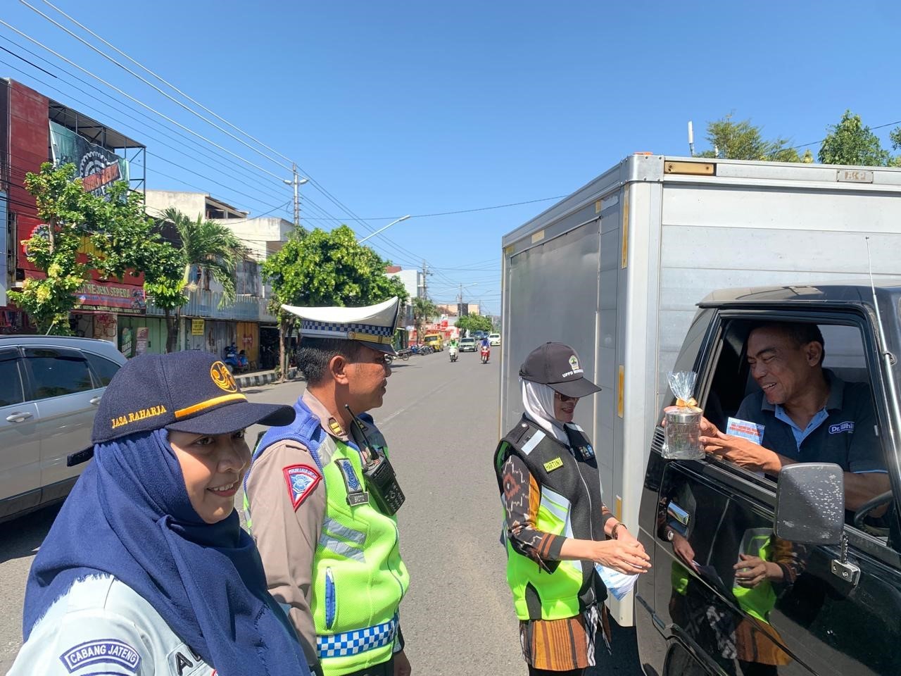 Selain itu, petugas Satlantas Polres Wonogiri memberikan imbauan kepada pengendara sepeda motor (R2) maupun mobil (R4) agar selalu tertib berlalu lintas dan memastikan kelengkapan kendaraan mereka.