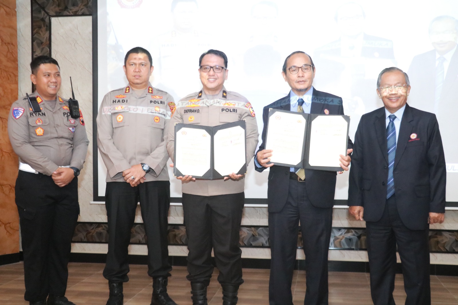 Dilanjutkan, sambutan Perwakilan Polri Brigjen Pol Defrian Donimando menyampaikan Penandatanganan Nota Kesepahaman antara UMUKA dengan Kepolisian RI ini merupakan seremonial dan acara formal untuk menuangkan suatu hal kerjasama yang telah terjalin yaitu jalinan kerjasama selama ini antara Polres dengan Umuka yang sudah intens dilakukan, dan semoga dapat memberikan manfaat bagi kedua belah pihak dan mahasiswa adalah aset negara yang perlu dibina secara kolaboratif Ia menekankan pentingnya kerja sama strategis antara lembaga pendidikan dan kepolisian demi peningkatan kapasitas sumber daya manusia dan penguatan ketahanan nasional di berbagai lini
